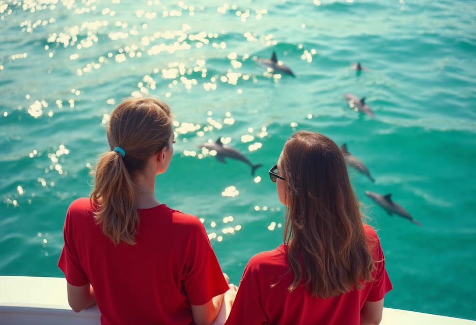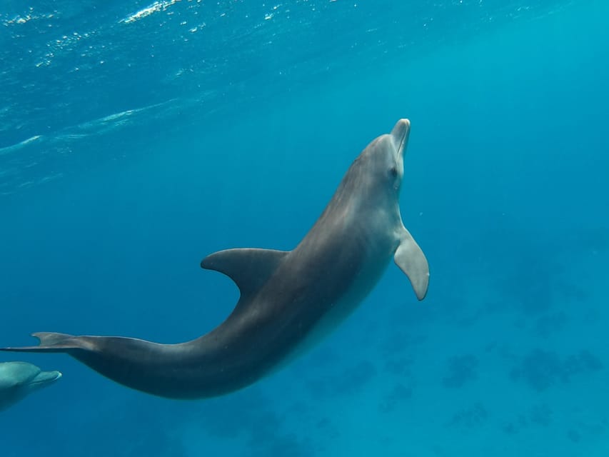 Your trip starts with a comfortable transfer from your hotel to the marina. Once on board, the crew will provide snorkeling equipment and a short safety briefing. The boat then sails to the Dolphin House area, where the chances of seeing dolphins are about 50%, depending on weather and sea conditions.